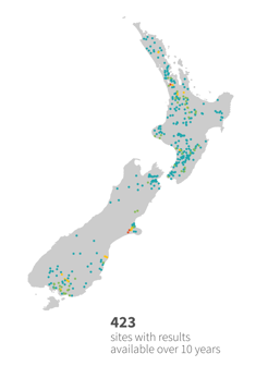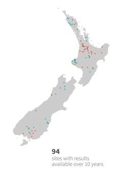 The data presented here are from year-round State of the Environment monitoring sites. Over the past 10 years:
